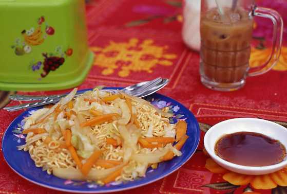 朝食は何時もこんな感じ。フライドヌードルウィズベジタブルといったところ。これは1ドルくらい。