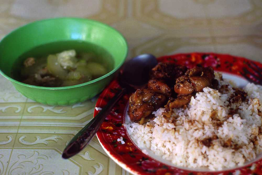 戦争犯罪博物館の近くにあった屋台で。通常この種のぶっかけ飯は、1ドルかそれ以下で食べることが出来る。