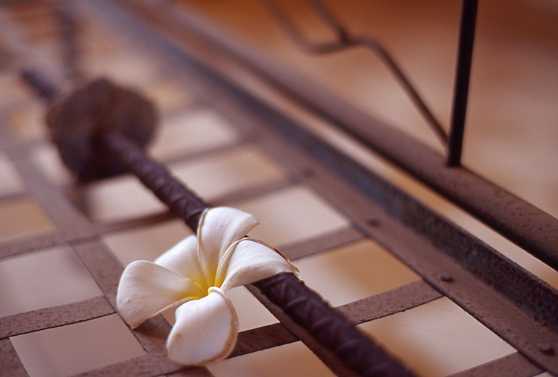 花の種類も誰が置いたのかも分からないが、僕が行った時は政治犯が収容されていたA棟の寝台の上に、いくつも散りばめられていた。確証はないが、地元のカンボジア人の宗教関係者が置いたのではと思った。