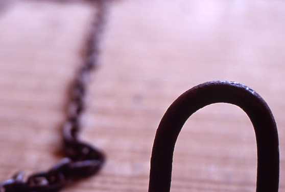 この寝台の上には自白の強要や拷問に使われたとされる器具が無造作に置かれている。これもそのひとつ。形からして手枷足枷のようにも見えるが、実際の用途は知らない。