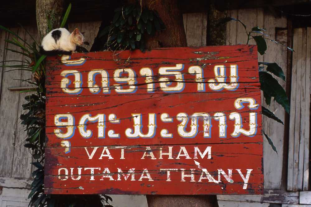 一般にタイやカンボジアの仏教寺院は、「WAT」と英語表記される。ラオスに関しても、ガイドブックなどでは「WATナントカ」と表記されてるのだが、なぜか地元のラテンアルファベットの表記では、「VAT」が目に付く。以前に訪れたラオス南部にあるワットプーでも、敷地内にあった寄付箱の表示は、「VAT PHOU」になっていた(この場合は「PHOU」にも違和感があった。一般には、「WAT PHU」)。