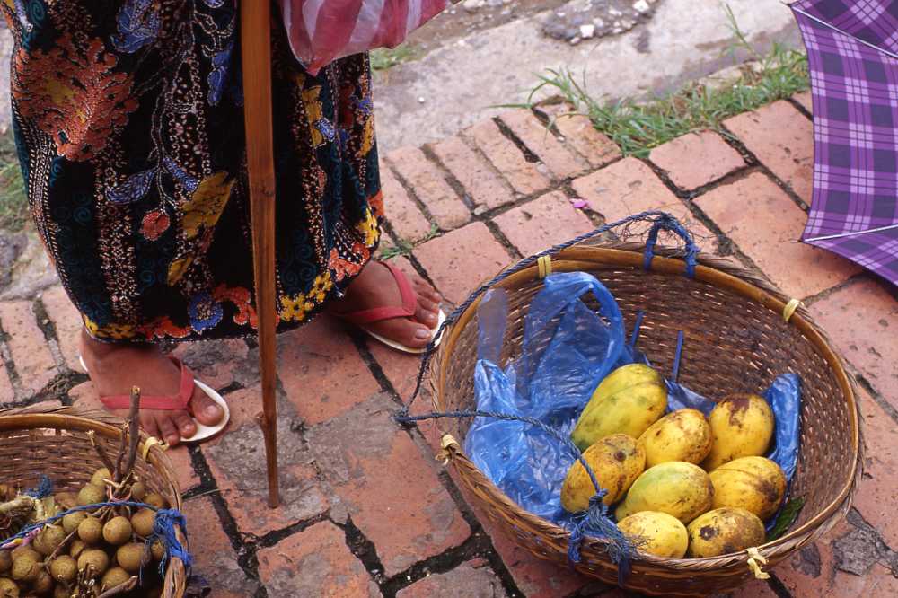 天秤棒を担いで売り歩いていた婦人からマンゴーを購入。東南アジアには美味しい果物で溢れているが、マンゴスチンと並んでマンゴーは外せない。