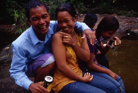 水遊びに興じたあとは、みんなで仲良く岩場に腰掛け、菓子を頬張りながらビールとピクニック気分を満喫した。何を話しているのか分からないが、賑やかな若い男女を眺めながら、つくづくアジア旅は青春が甦る機会を与えてくれるなあなどと、しばし感慨に浸る。同年代の他の人のことは知らないが、日本でこういう場に加わることは、僕はまずない。