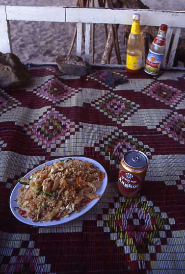 注文を告げると、器を手にした従業員が素早く浜に走り出した。各レストランの前の浜には生け簀のようなものが水に浸されていて、そこから客が注文した物を取り出すのだ。魚や蟹などはもちろん生きている。新鮮で、産地直送以外の何物でもない。